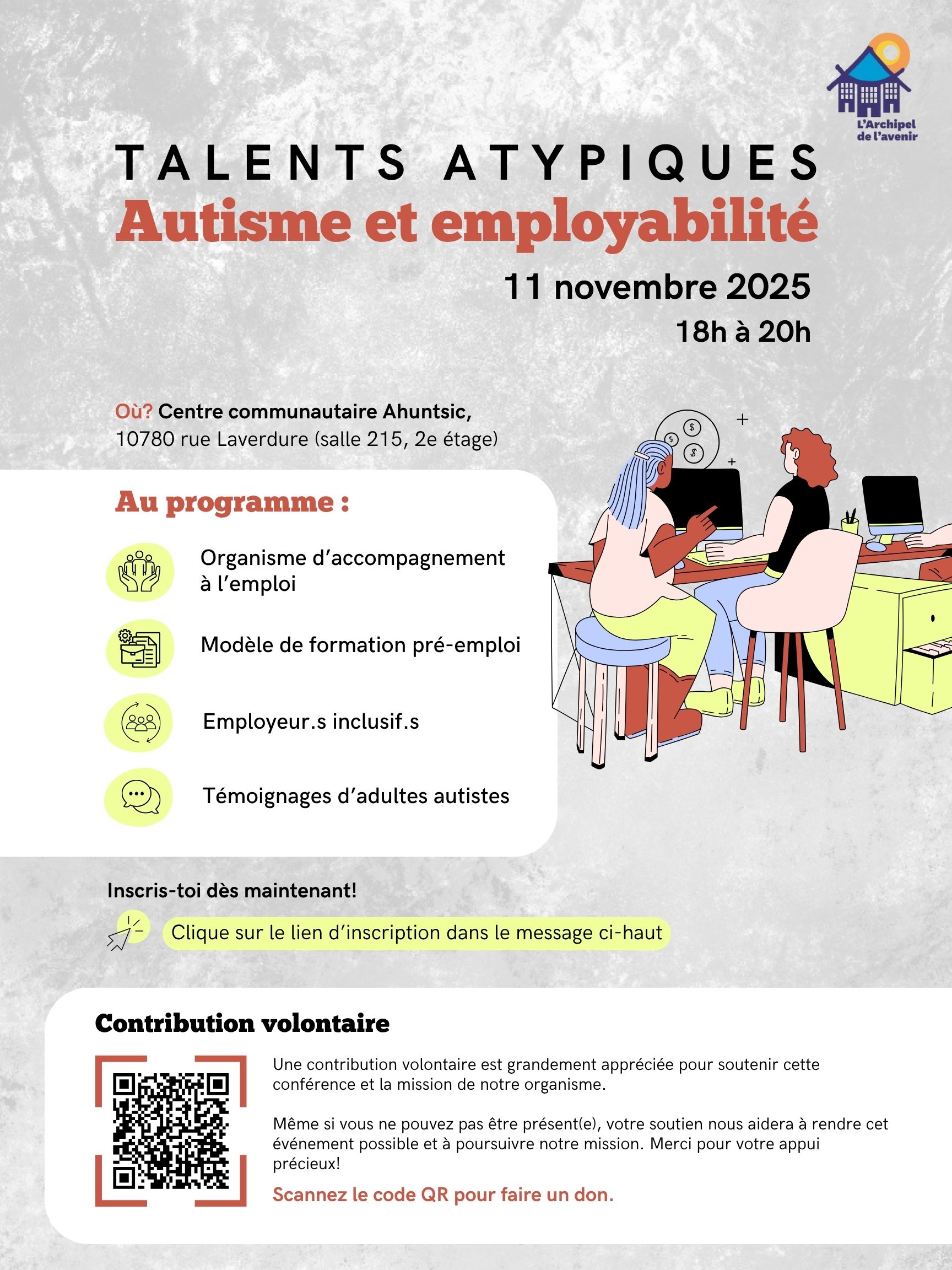 C’est avec grand plaisir que L’Archipel de l’avenir t’invite à une conférence sur l’autisme en milieu de travail!